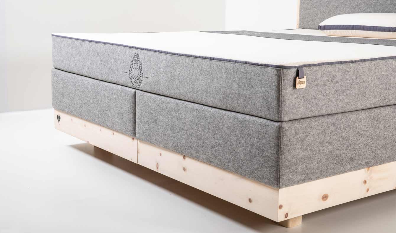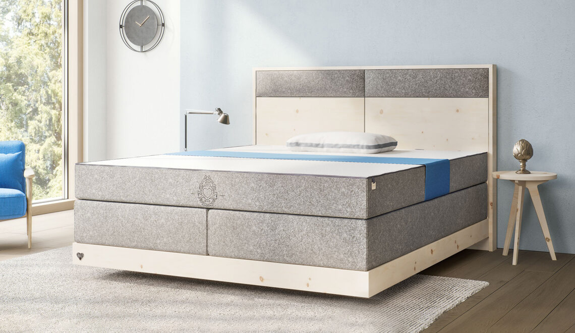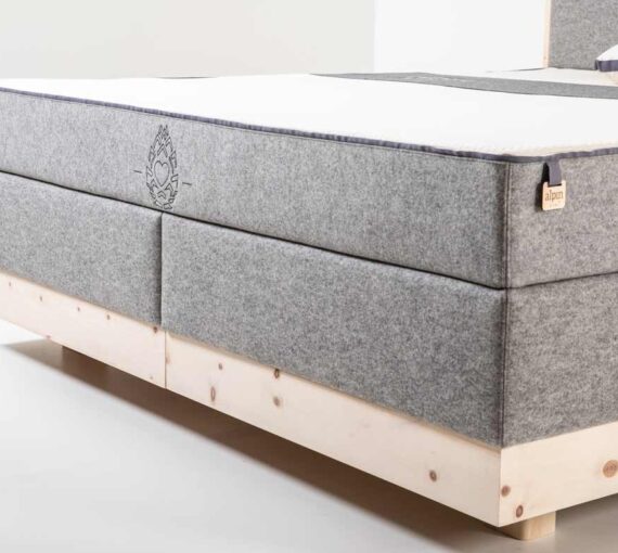 Stylish and natural, the “Alpinspring” box spring line features the first metal-free box spring beds with natural spring technology, offering the highest sleeping comfort and the wonderful scent of the Stone pine.